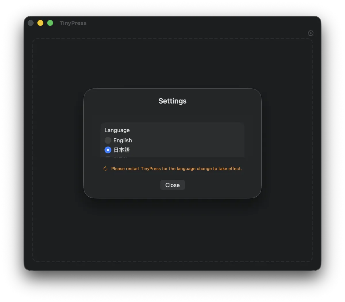 TinyPress はすべての処理を Mac のローカルで実行します。画像をクラウドにアップロードする必要がないので、プライバシーの心配もなく、ネット環境がなくても使えます。